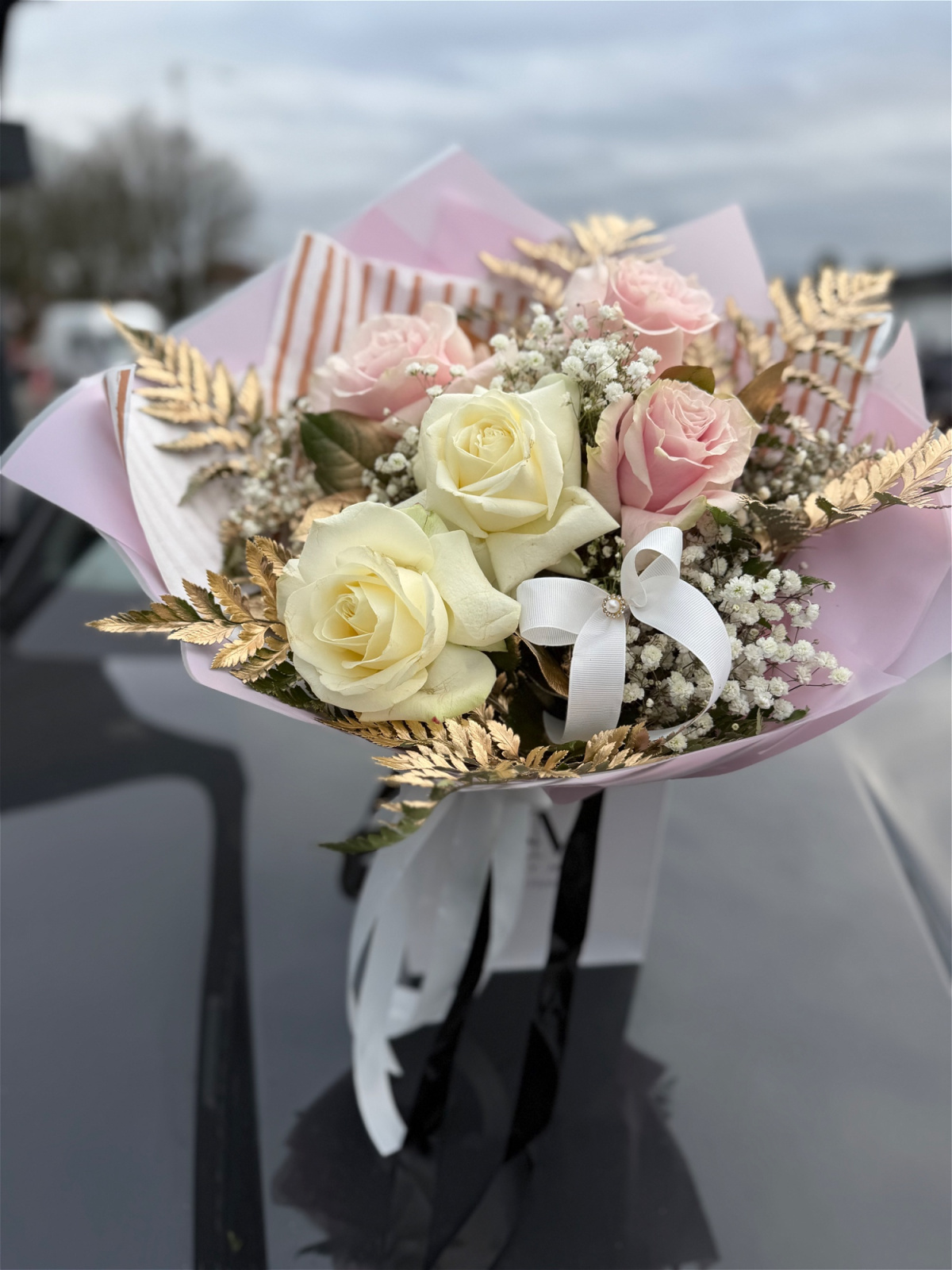 *Please note:* flower varieties may vary slightly due to seasonal availability, but the overall colour palette and luxury style will always be matched.